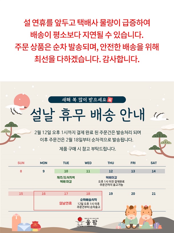 · 예약 발송 상품은 상 품 상세 설명에 안내한 배송관련 정보를 반드시 확인 후 구매해 주세요.