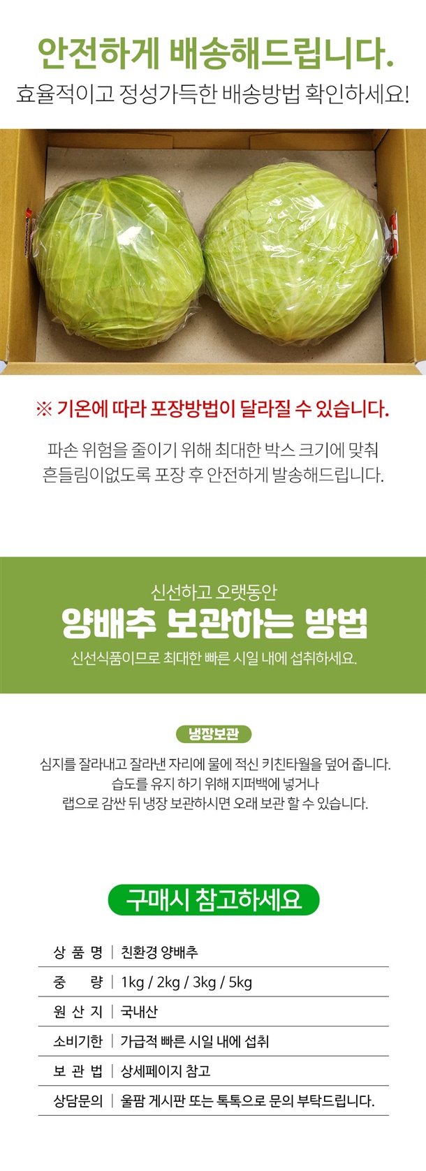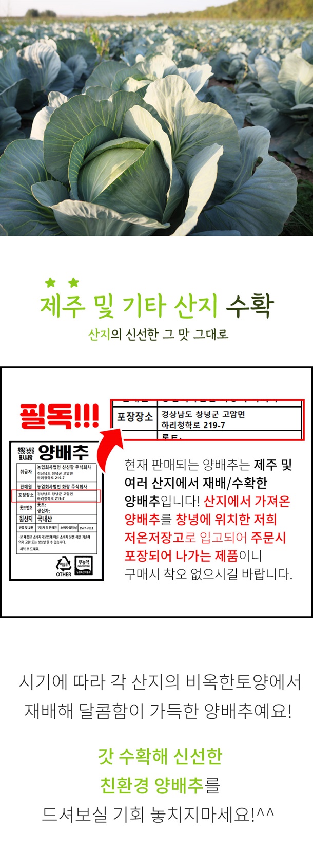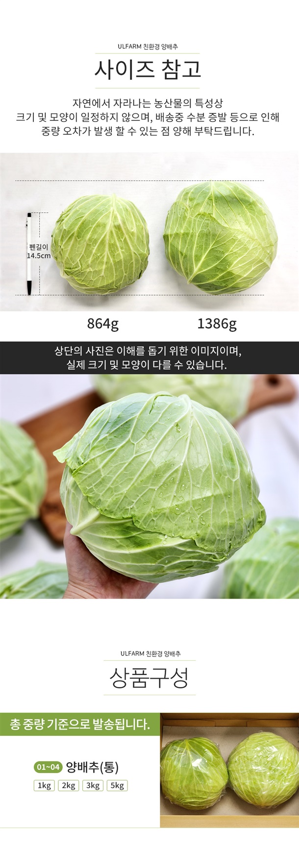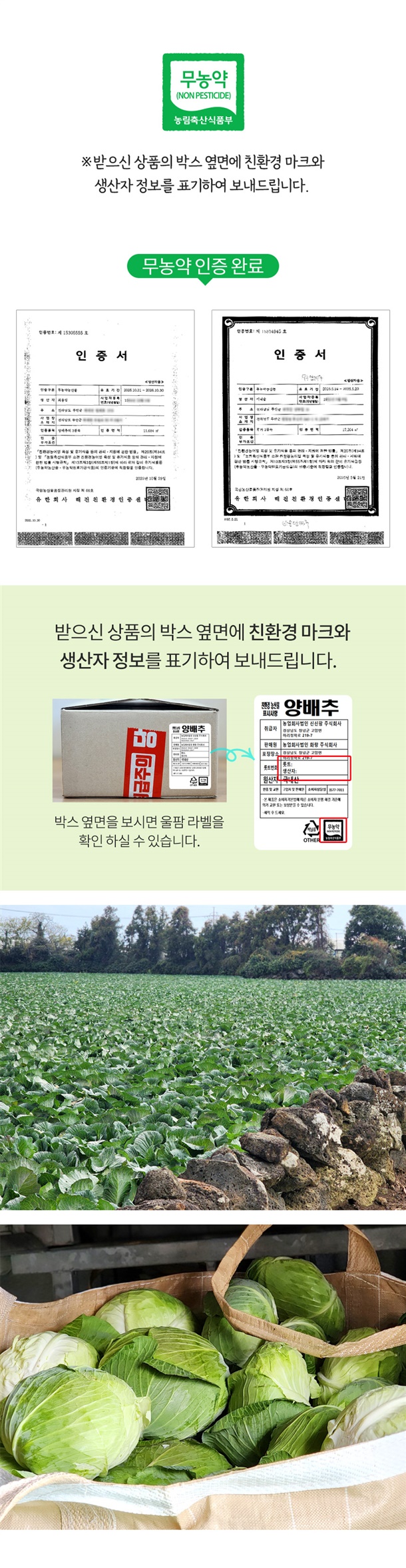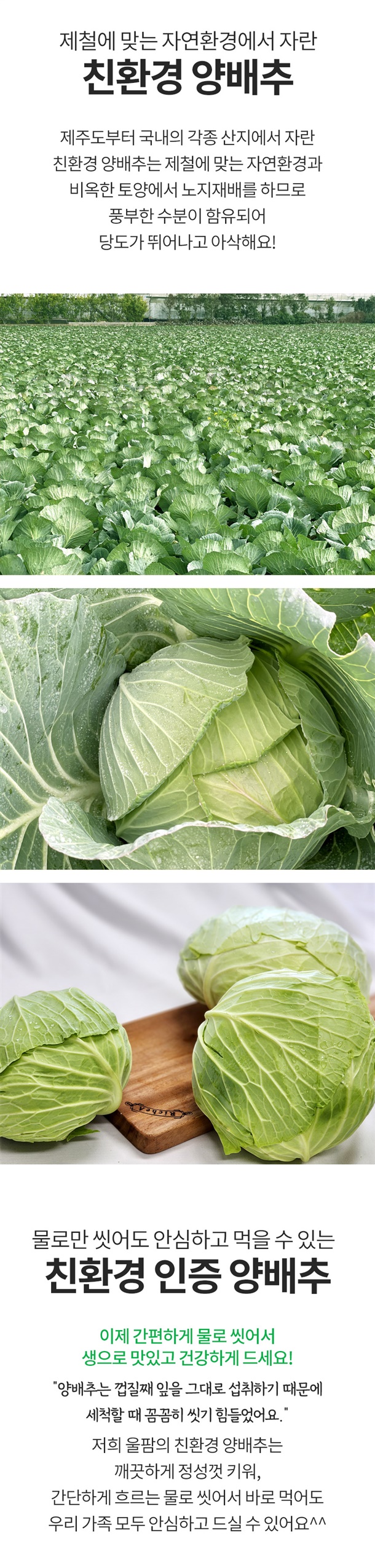 깨끗하고 정성껏 키운 친환경 양배추